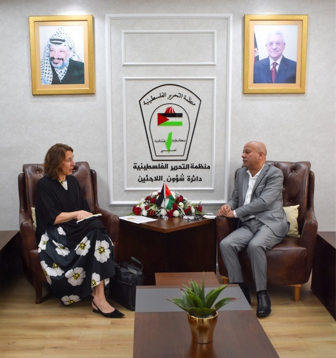 بحث عضو اللجنة التنفيذية لمنظمة التحرير الفلسطينية، رئيس دائرة شؤون اللاجئين، د. أحمد أبو هولي، مع المبعوث الألماني الخاصة للقضايا الإنسانية في الشرق الأوسط والمدير العام للوقاية من الأزمات، السيدة دايك بوتزل، الموضوعات ذات الاهتمام المشترك المتصلة بالشؤون الإنسانية والإغاثية، في فلسطين، وآليات دعم وكالة غوث وتشغيل اللاجئين الفلسطينيين في الشرق الأدنى "الأونروا" وتمكينها المالي للقيام بولايتها بحسب التفويض الممنوح لها بالقرار 302 .