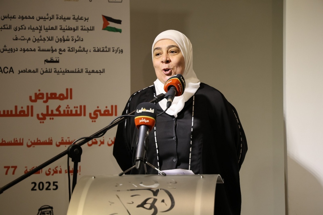 من جانبها، أكدت الدكتورة ليلى غنام، محافظ رام الله والبيرة، أن إقامة هذا المعرض في ذكرى النكبة يعكس صلابة الذاكرة الفلسطينية، وأن الفن الفلسطيني قادر على توثيق الجرح والتمسك بالحق في آنٍ واحد. وأضافت أن اللوحات الفنية تعبّر عن قصة كل لاجئ، وكل قرية مدمّرة، وكل مخيم يتعرض للهجوم، في ظل محاولات تفريغ المخيمات من بعدها الوطني والإنساني.