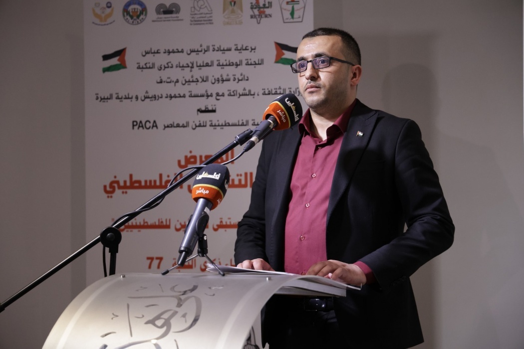 وفي كلمته خلال الافتتاح، شدد عضو اللجنة التنفيذية ورئيس دائرة شؤون اللاجئين، د. أحمد أبو هولي، على أن هذا المعرض ليس مجرد مساحة فنية، بل هو منصة وطنية مقاومة تُعبّر عن النكبة كحدث مستمر، ويمثّل انطلاقة لسلسلة من الفعاليات الوطنية في الذكرى الـ77 للنكبة، وعن معاناة اللاجئين الفلسطينيين التي تتجدد مع كل استهداف للمخيمات، واستمرار حرب الإبادة في غزة، وكل محاولة لإنهاء دور وكالة الأونروا كمدخل لتصفية القضية. وأكد أن اللوحة الفلسطينية اليوم هي شاهد حي على الرواية الوطنية، ورسالة واضحة بأن شعبنا متمسك بحقه في العودة وقضيته العادلة، مهما اشتدت المؤامرات.